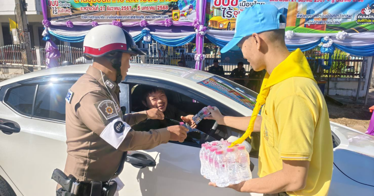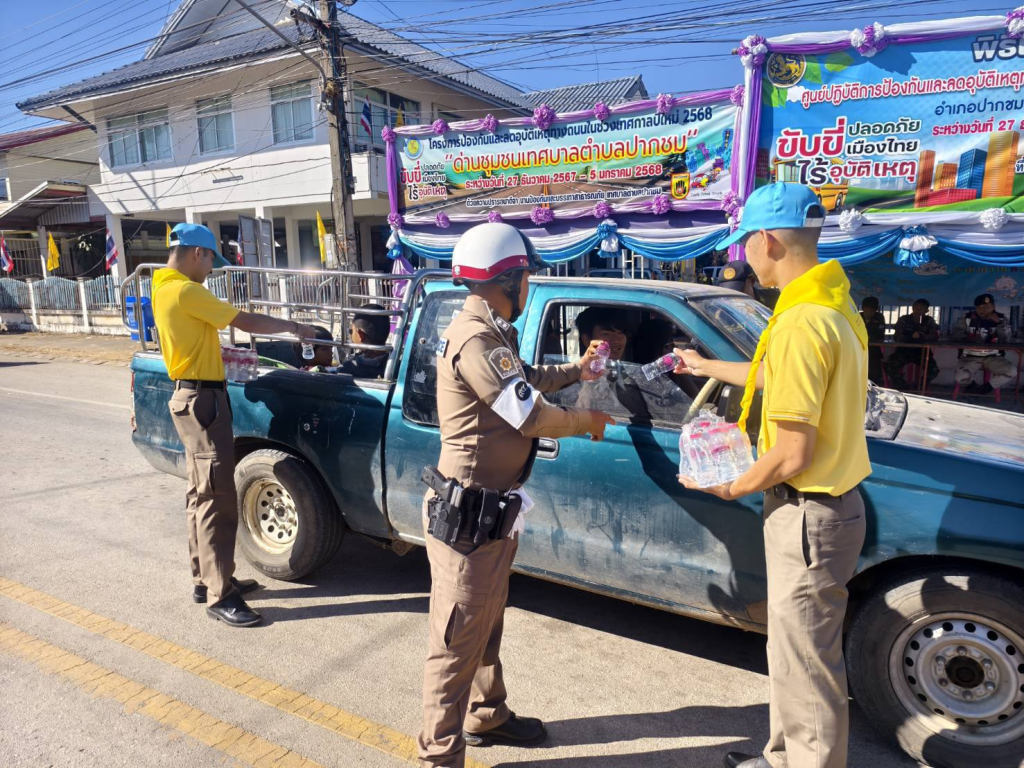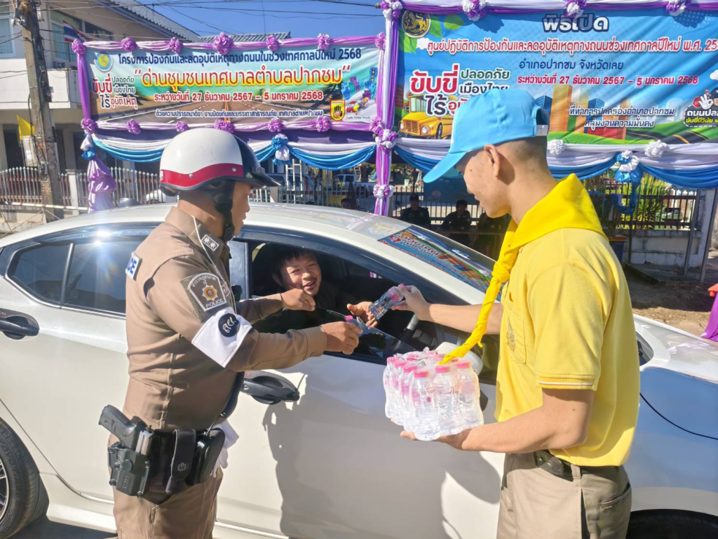 มอบหมายให้ชุดจิตอาสา สภ.ปากชม ดำเนินการบริการแจกน้ำดื่ม,เครื่องดื่มชูกำลัง และ แนะนำเส้นทางการสัญจรแก่ประชาชน ในช่วงเทศกาลปีใหม่ 2568