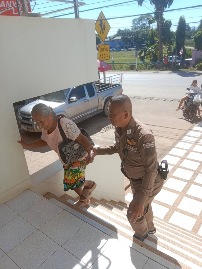 ช่วยเหลือประชาชนผู้สูงอายุเดินขึ้นบันได ที่มาใช้บริการธนาคารออมสิน