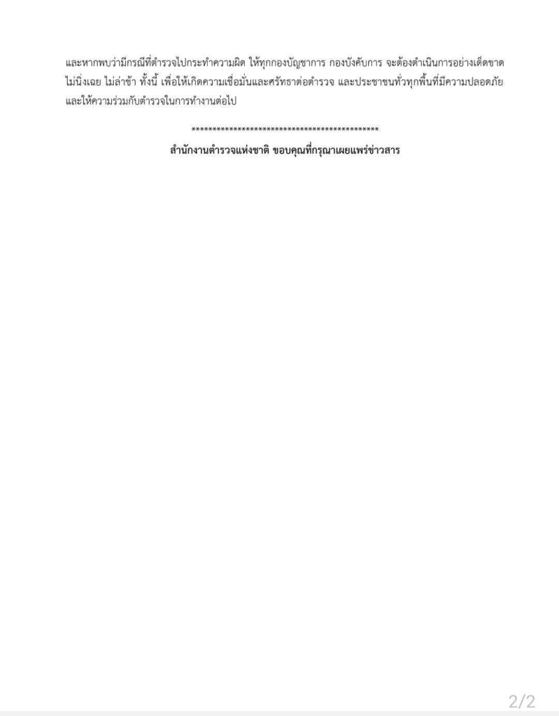 นอกจากนี้ สั่งการให้ฝ่ายบริหารของสำนักงานตำรวจแห่งชาติ , กองบัญชาการศึกษา และหน่วยงานที่เกี่ยวข้อง ไปพิจารณาทบทวนผลการสอบเป็นนายตำรวจชั้นสัญญาบัตรราย ส.ต.อ. ซึ่งขณะนี้ยังอยู่ในระหว่างระยะเวลาที่ยื่นอุทธรณ์ได้ ขอให้พิจารณาด้วยความละเอียด รอบคอบ มีความเหมาะสมตามสายงาน เป็นไปตามระเบียบและกฎหมาย คำนึงถึงการปฏิบัติหน้าที่ที่ผ่านมา ความตั้งในการรับราชการ แล้วรายงานให้สำนักงานตำรวจแห่งชาติทราบโดยด่วน จึงขอให้ผู้บังคับบัญชาของสำนักงานตำรวจแห่งชาติให้ความสำคัญ ดูแล ใส่ใจกับสิทธิประโยชน์และสวัดิการ ขวัญกำลังใจอย่างเสมอภาคและเท่าเทียมกัน
