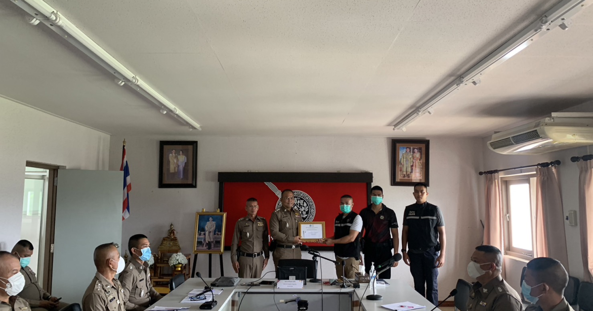 พ.ต.อ.ตรีกฤช จงวิไล ผกก.สภ.ปาก เป็นผู้แทนผู้ว่าราชการจังหวัดเลย มอบใบประกาศเกียรติคุณและเงินรางวัลเพื่อเป็นขวัญกำลังให้แก่ข้าราชการตำรวจที่ปฏิบัติหน้าที่จับกุมยาบ้าได้ 1,188,000