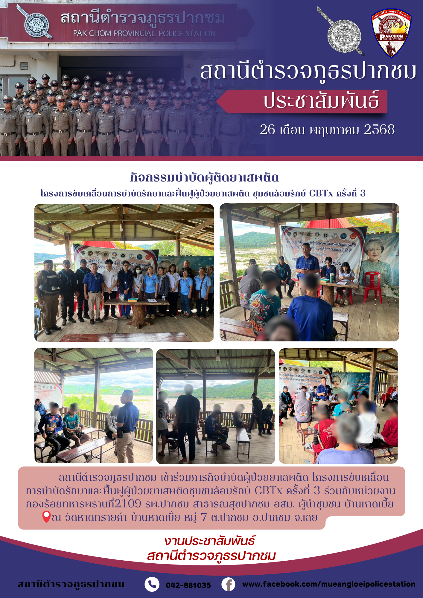 โครงการขับเคลื่อนการบำบัดรักษาและฟื้นฟูผู้ป่วยยาเสพติดชุมชนล้อมรักษ์ CBTx ครั้งที่ 3 26 พฤษภาคม 2568 โดย pakchom814